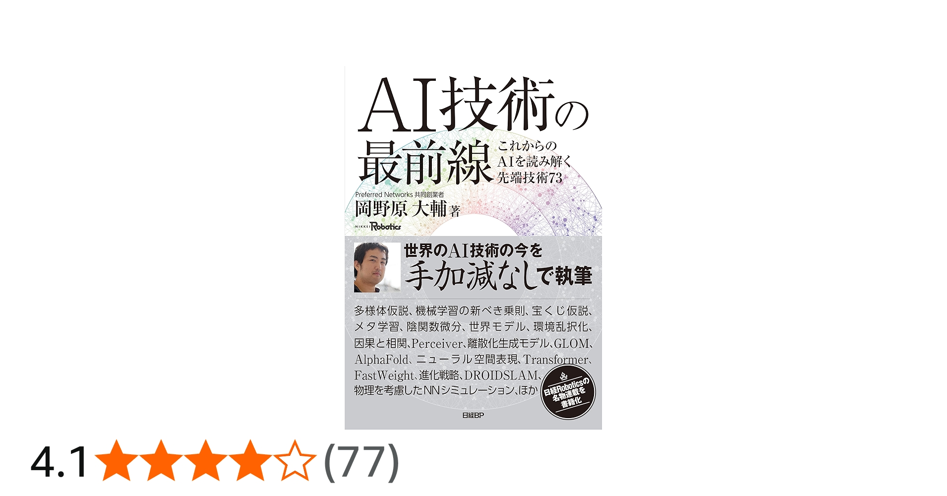 日本を代表するAIベンチャーの共同創業者が7年間にわたり、第一線のエンジニア向けに手加減なしで書き続けた『日経Robotics』誌のAI解説人気連載が待望の書籍化。
