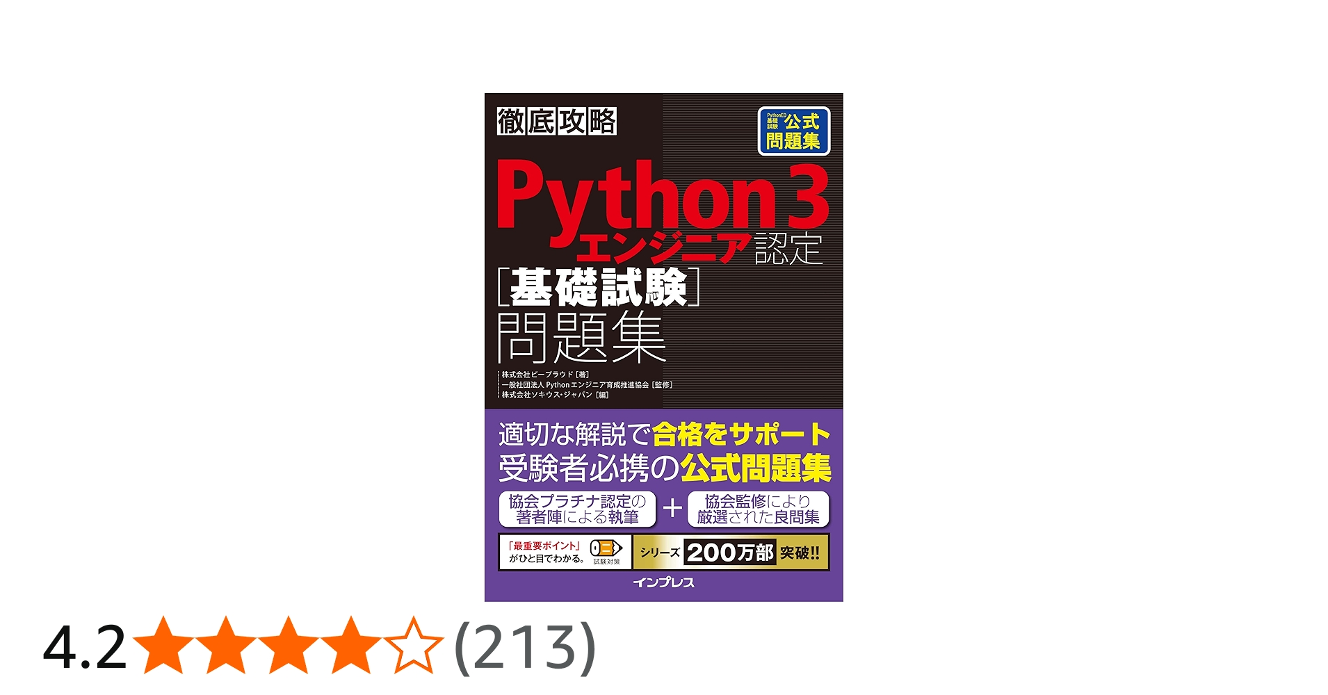 Pythonエンジニア育成推進協会が実施するPythonの試験【Python 3 エンジニア認定 基礎試験】に完全対応の公式問題集