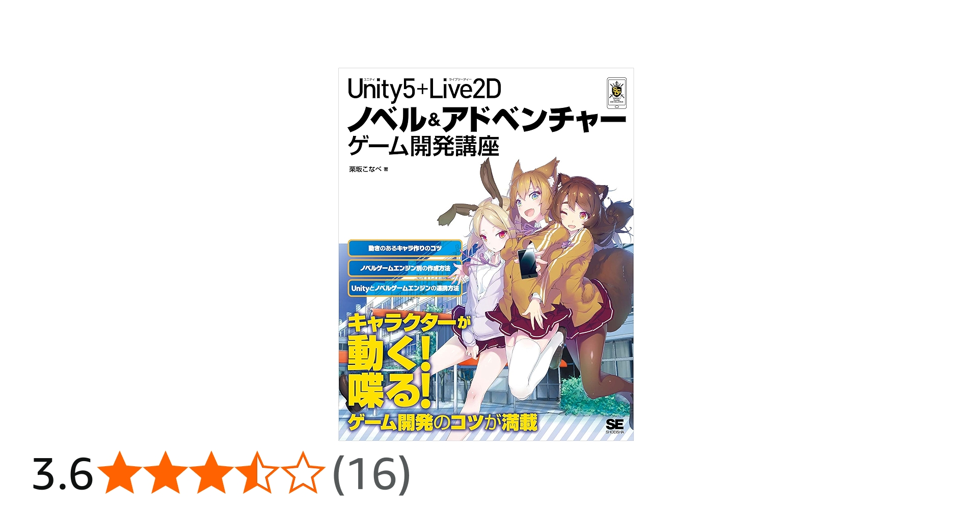 Unityと近年大人気のアニメーション作成ツール「Live2D」、大注目のノベルゲームエンジン「ジョカースクリプト」「ティラノビルダ―」「宴」を利用して、ノベル&アドベンチャーゲームを作成する手法を解説する書籍