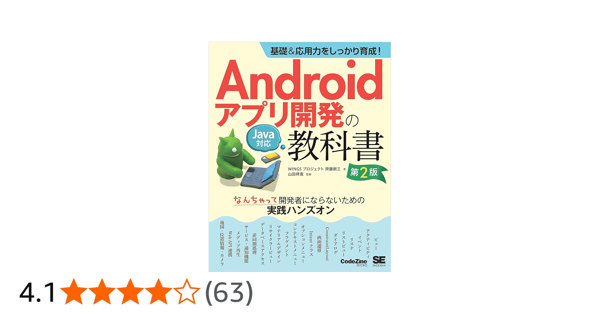 Java言語の学習者を対象としてハンズオン形式でサンプルプログラムを作りながらAndroidアプリ開発に必要な基礎知識やSDKの機能、プログラミングテクニックを学ぶことができる書籍
